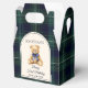Esta divertida caja de favor de fiesta de cumpleaños, con un oso de peluche lindo en un fondo de tartán a cuadros, se puede personalizar con toda la información de su evento especial. Diseñado por Thisisnotme©