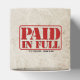 IMAGEN: Las palabras, "PAGADO EN SU TOTALIDAD" - simple, aunque audaz en forma de galería de símbolos como sello de salvación. COLORES: Rojo y Negro. TEXTO: "Pagado en su totalidad / Está terminado" John 19:30. ... . Diseñado para hombres y mujeres, de todas las edades, que creen que la muerte de Jesús pagó acabó con la deuda del pecado de la humanidad por completo y para siempre. (DISEÑO por Paula Bragg)