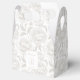 Caja de Favor de Boda Escudo de Monograma Pale Taupe: escudo de monograma de arte de línea inspirado en la cosecha con tipografía elegante. Añadir las primeras iniciales para un escudo de boda personalizado. Presenta un patrón floral chinoiserie de peonías para una sofisticación eterna.