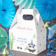 Cute baby panda kids birthday favor box featuring an adorable panda wearing party hat with a panda footprint, bamboo and stars at the background.