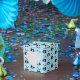 Caja de favores de partido mostrada en azul claro en una linda huella de oso panda personalizado. Personalizar este elemento y agrega tu propio texto o compra tal cual y agrega alguna cinta de bonito.