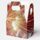 Un brillante destello incandescente blanco, rosado y rojo del Día de la Independencia, un programa de fuegos artificiales del 4 de julio, iluminan el cielo negro azabache y crean una emocionante imagen.
