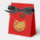 Composición con papel tradicional chino dorado cortado de un tigre + pequeñas letras modernas para el Año del tigre 2021 y símbolo de ideograma de tigre chino en un pequeño círculo negro. Diseño en caja de favores de tienda con fondo rojo. Disponible en cajas de favores de cubo, gable y extractor. Tarjeta de felicitación coincidente, postal de vacaciones, invitación, suministros para fiestas y más. Perfecto para el Año Nuevo Chino del Tigre 2022 o cumpleaños (personas nacidas en el Año Tigre).