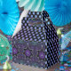 Un patrón bastante gótico en morado oscuro sobre fondo negro, con algunos toques más brillantes: un patrón de paraguas de encaje de 7 paneles con 7 corazones morados, reunidos de varias maneras para un aspecto misterioso y romántico. (💜 algunos de ustedes también verán por el color morado y el 7 que soy fan de un grupo kpop mundialmente famoso💜).
