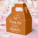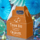 Esta moderna caja de favores del partido de graduación de la escuela de derecho personalizado presenta el nombre del graduado universitario en un elegante guión blanco en el fondo naranja para la clase de 2024. Personalizar con tu universidad bajo la balanza de la justicia con un mensaje de agradecimiento para un nuevo abogado.