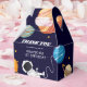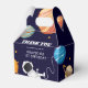 Cajas de favores con temática de cumpleaños con un fondo de cielo estrellado, planetas del sistema solar, un barco de cohetes, astronauta, y una plantilla de agradecimiento de cumpleaños que es fácil de personalizar.