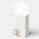 Celebrate a little one's milestone with these charming birthday Favor Box. Featuring a pastel-striped background, gold star accents, and an adorable teddy bear in party attire. Whimsical and warm, this design sets the tone for a joyful first birthday celebration filled with games, treats, and festive cheer.