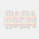 Una minúscula caja de favores con un patrón delicioso y caprichoso. Corazones, cartas de amor, muffins, tulipanes y cerezas traen alegría y felicidad a este lindo y pequeño patrón. colores pastel bonito. Un cuadrado blanco con un falso borde de Relieve metalizado dorado sobre la parte superior con tu texto dentro.