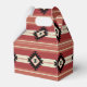 Patrón bohemio étnico azteca con formas geométricas en rojo, naranja, gris y negro sobre fondo rayado