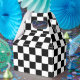 Hermosa imagen contemporánea del diseño de banderas de carreras en un fondo de cuadros negros y blancos. El diseño hipster es ideal para los amantes del deporte de carreras, los aficionados a las carreras, los aficionados a la moda, los aficionados a las tendencias de cadera, los amantes de los motivos geométricos abstractos modernos o retro vintage.