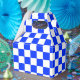 Diseño de patrones de cuadrados geométricos de verificación azul y blanco