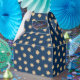 Esta caja de bienvenida está decorada con un patrón de estrellas falsas del Relieve metalizado dorado sobre un fondo de color azul marino.