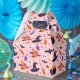Este diseño muestra un llamativo y vibrante patrón de Halloween con un juego de colores. El diseño presenta un suave fondo rosa, adornado con una serie de clásicos íconos de Halloween. Entre ellos se encuentran gorras brujos, calderos burbujeantes con pociones, murciélagos voladores, cráneos, palillos y botellas de poción. También hay elementos como champiñones, estrellas, lunas en media luna y nubes, todo representado en una paleta de violetas, naranjas y negros ricos. El conjunto es divertido y festivo, lo que refleja el espíritu espeluznante y a la vez alegre de Halloween, perfecto para decoraciones, disfraces o suministros de fiesta.