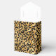 Una caja de favores con un diseño elegante. Zonas exóticas de leopardo negro sobre un fondo dorado. Estilo salvaje pero elegante.