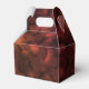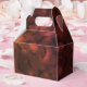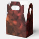 Caja de favores con temática de Halloween con fondo de naranja oscuro y bokeh rojo y patrón de murciélagos negros.