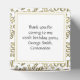 Diga "Gracias" con este tema de cumpleaños del centenario dorado y blanco usando las plantillas suministradas. Este fondo es un patrón de número aleatorio de oro y blanco con el número de hito 100 repetido en tamaños y ángulos variados. Hay un cuadrado blanco en la parte superior y una banda alrededor de la parte central para tu texto. Utilice las plantillas fáciles para agregar sus propias palabras, nombre inicial o monograma. El gráfico es una idea divertida para envolver pequeños regalos o favores de fiesta para tu fiesta de 100 años. El diseño también es adecuado para todas las ocasiones centenarias en las que se celebra el número cien.