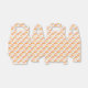 Este diseño de arte folclórico presenta un patrón de peces naranja, amarillo y verde azulado.