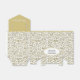 Diga "Gracias" con este tema de cumpleaños del centenario dorado y blanco usando las plantillas suministradas. Este fondo es un patrón de número aleatorio de oro y blanco con el número de hito 100 repetido en tamaños y ángulos variados. Hay una solapa de oro en la parte superior y una placa ovalada en la parte central para tu texto. Utilice las plantillas fáciles para agregar sus propias palabras, nombre inicial o monograma. El gráfico es una idea divertida para envolver pequeños regalos o favores de fiesta para tu fiesta de 100 años. El diseño también es adecuado para todas las ocasiones centenarias en las que se celebra el número cien.