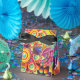 Funky patrón retro bohemio con coloridas mandalas florales.