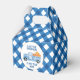 Una pequeña calabaza azul plaid y un camión azul caen caja de favores para la ducha de bebé