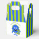 "¡Feliz cumpleaños!" Una imagen divertida de un monstruo azul y verde divertido, lindo, adorable y brillante que sostiene el número dos anuncia este cumpleaños de su chico especial. El fondo es de rayas azul intenso y verde limón. Envíe a sus huéspedes a casa con un recuerdo especial cada vez que empaca sus productos en esta moderna y moderna caja de favores personalizada. ¡Esta caja de favores está garantizada para establecer el tono correcto para tu fiesta de cumpleaños! En esta colección especial y divertida también hay disponibles invitaciones, sobres, placas de papel, servilletas y otros artículos de cumpleaños. Simplemente teclee el nombre del niño de cumpleaños y puede personalizar fácilmente esta caja de favores. Por favor, envíame cualquier pregunta o petición.