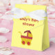 Atrapador de bebé amarillo cortado a mano con arco rojo y cinta roja, botones rojos pegados en las ruedas y fondo amarillo claro en las cajas de ducha para bebé o bebé. A su opción, puede escribir el nombre de su hijo y escribir su gratitud por los regalos que ha recibido por su bebé. *Todas las cosas que ves en los productos son hechas a mano, ¡pero debes saber que tienes una foto!