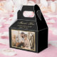 Elegantes cajas de fotos personalizados bodas negros y dorados. Personalice fácilmente estas cajas de favores de boda con los detalles de su boda. Nuestras cajas de favores de boda personalizadas son perfectas para tu fiesta de bodas clásica en negro y oro. Estas cajas de agradecimiento personalizadas se pueden personalizar para otras ocasiones, como las duchas de novias.