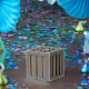 Un cajón de madera de caricatura marrón con bordes metalizado grises disecados.