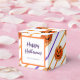 Un delicioso personalizable Halloween Favor diseño de caja con ilustracion de galletas azucaradas de una calabaza de naranja jack o linterna y rayas naranjas sobre fondo blanco.