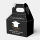 Esta moderna caja de favores de los personalizados para el partido de graduación senior presenta el nombre de graduado de secundaria de oro elegante en el fondo negro de la moda para la clase de 2025. Personalizar con tu bachillerato, universidad o nombre y año universitario por un gran mantenimiento de la graduación para mayores.