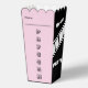 Sirva palomitas deliciosas en estas elegantes cajas. Ideal para fiestas de cumpleaños para niños, veladas de cine en casa y cualquier ocasión, las cajas se pueden personalizar con el nombre de tu evento, como "Avery's 9th Birthday" o "Cassie's Bridal Shower". También hay espacio para que escriba a mano el nombre del destinatario en cada cuadro. Las cajas son de color rosa pastel, en blanco y negro, con "Fiesta de cine" y cuadros de películas en dos lados, y "Popcorn" en una tipografía elegante en los lados restantes. Trate a sus huéspedes con los aperitivos de palomitas de maíz durante su evento, o preséntelos al final como un lindo favor de fiesta.