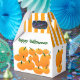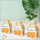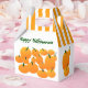 Dibujo digital de varias calabazas de tamaño y forma con efecto de tela. La parte superior tiene rayas verticales naranjas y blancas. En tonos naranja y verde sobre blanco, este diseño será divertido en otoño. Esta caja de favores para fiestas es perfecta para Halloween, Día de Acción de Gracias o boda en otoño, cumpleaños u otros eventos. El texto dice "Feliz Halloween" y puede ser personalizado.