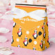 Caja de Favor de Navidades amarillos, blancos y negros con pingüinos jugando pickleball y copos de nieve sobre fondo amarillo. Gran idea para envolver tus regalos para tu amigo o miembro de la familia. texto de personalizable