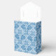 Una bonita caja de carpas Favor, con un patrón floral de color Faux Lace en azul índigo sobre un fondo blanco que se puede cambiar si se desea. Como parte de la colección "Indigo Lace" de Posh & Painterly, usted puede fácilmente personalizar esta caja de favores rotando o redimensionando el mosaico de patrón de Indigo Lace y se ajustará a cualquier caja de Favor.