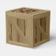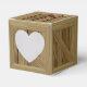 Una caja de favores que parece una caja de madera. Tiene texto de personalizable en la parte superior. Cuidada para pequeños regalos o dulces.