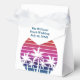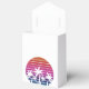 Cute tropical island palm tree sunset favor box for a beach wedding or island party. Features beautiful palm trees in front of a pretty pink sunset. Fun customized boxes for your summer event on the coast or Hawaiian wedding.