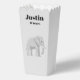 Make your little one's celebration unforgettable with these adorable, double-sided elephant popcorn boxes. This modern grey and white design features a cute watercolor elephant on both sides, with fully customizable text to make it uniquely yours.