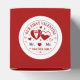 Add a touch of custom charm to your romantic celebrations with our Personalized "Our First Valentine" Favor Box. Featuring a vibrant red base and a crisp white circular seal, this box is designed for the couple celebrating their very first February 14th together.