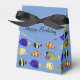 Estos coloridos peces tropicales son ideales para los fiestas de la piscina y la playa o para los eventos náuticos. Cambie el mensaje y el color de fondo a su gusto.