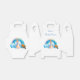 Este diseño es una acuarela colorida pintada de arcoiris y nubes con Peter Rabbit empujando una carretilla con zanahorias. Este conjunto de colecciones ofrece invitaciones y suministros para fiestas que coincidan.
