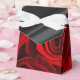 Foto de un elegante piano negro con un teclado de ébano y marfil junto a una fotografía de un lecho de rosas rojas separadas por una cinta roja satinada.