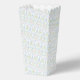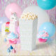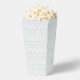 This sweet popcorn favor box features a pastel pink and blue grandmillennial pattern in the background.