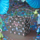 Caja de favores del partido de polka rosa y azul estilo tablón de colores para Pink Bows o Free Throws con tema de género.