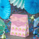 Pretty, pink and girly strawberry pattern on custom tent favor boxes.