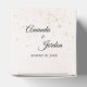 Esta caja de favores de la plaza boda de la Montaña Rosa Amanecer le da a su boda un toque elegante y único, pero simple y casual. El amanecer y la puesta de sol en tonos rosa, malva, melocotón, rubor, coral y rosa polvoriento, besados con purpurina de oro estrellado alrededor del texto de caligrafía estilizada aportan un carácter pacífico y mínimo a las montañas pintadas de color gris para una celebración matrimonial con temática montañosa.