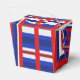 Una estampada patriótica en tonos rojos, blancos y azules.