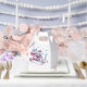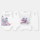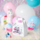 Un animado ilustracion acuático de una alegre zona de juegos, ideal para una copa de cumpleaños. La zona de juegos está decorada con múltiples toboganes rosas y azules, con un toque caprichoso. Estrellas rosas y azules brillan por todo el lugar, lo que realza el ambiente festivo. El fondo es de color blanco puro y crujiente, por lo que destacan los colores vivos. El texto curvo y burbujeante dice "Correr, subir, deslizarse y jugar", capturando la emoción de una celebración llena de diversión.