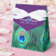 Elegante plum morado y vibrante esmeralda verde, azul real y azul verde azulado plumas de plumas de pavo real caja de favores. Puede añadir texto en el estilo de letra, tamaño y color de su elección en esta hermosa caja de favores de la boda púrpura de ciruela.