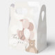 ¡Podemos esperar con agallas! Celebra tu pequeña con nuestras adorables y sencillas cajas de bienvenida con globo de oso rosa para bebés en ducha. El diseño se compone de una paleta de color marfil y rosa, un oso marrón en las nubes y una tipografía serif y sans serif elegantemente equilibrada, perfecta para una ducha de bebé suave y femenina.