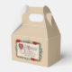 Caja de favores de estilo gable con una imagen vintage, en la parte delantera y trasera, de un corazón azul floral y rojo enmarcado alrededor de un poema de San Valentín. El poema dice "A mi San Valentín. Si este mundo se cortara en dos, lo encontrarías lleno de amor por ti". Consulte la tarjeta de felicitación correspondiente, la etiqueta de regalo y el pegatina. Ver toda la colección de la caja de favoritos de San Valentín en los TOUCHES ESPECIALES | Sección de favoritos de partido.